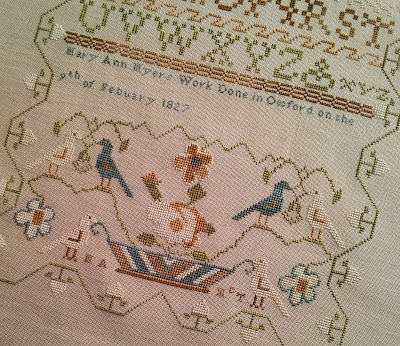 I am working on a couple of samplers at the moment, Sarah Redfearn 1826 by The Scarlett House and have just started Noel Sampler by With Thy Needle and Thread / Brenda Gervais. I will update you on those soon.